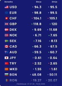 Ndërkohë monedha evropiane euro do blihet me 98.8 lekë dhe do shitet me 99.5 lekë. Franga zvicerane sot në tregun shqiptar do blihet me 104.1 lekë dhe do shitet me 105.1 lekë. Ndërsa paundi britanik do blihet me 118.8 lekë dhe do shitet me 120 lekë.