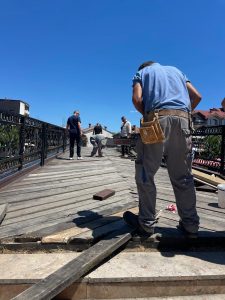 Punëtorët që takuam thonë për Ora24.tv se sot riparuan vetëm pjesët më të rrezikshme, ndërsa pas sezonit turistik, kompania “Trim dhe Lum” do ta riparojnë të gjithë Urën e cila njihet si ikonë e qytetit./Ora24.tv
